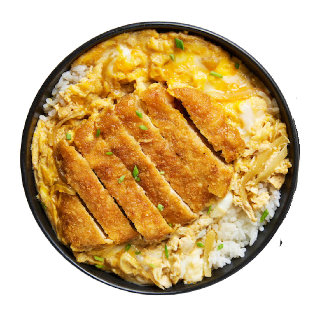 Pork cutlet with sweet & savory sauce, scrambled egg on rice