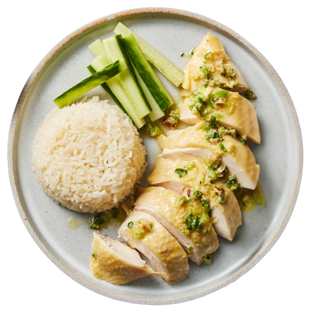 Steamed boneless leg quarter with ginger rice & sauces