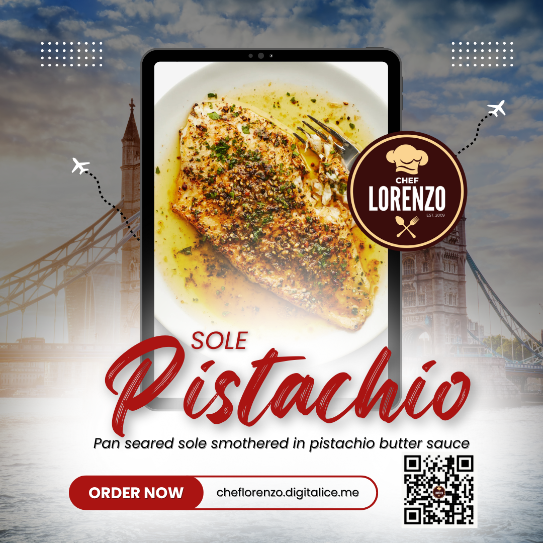 Pan seared sole smothered in pistachio butter sauce. Definitely a house specialty.