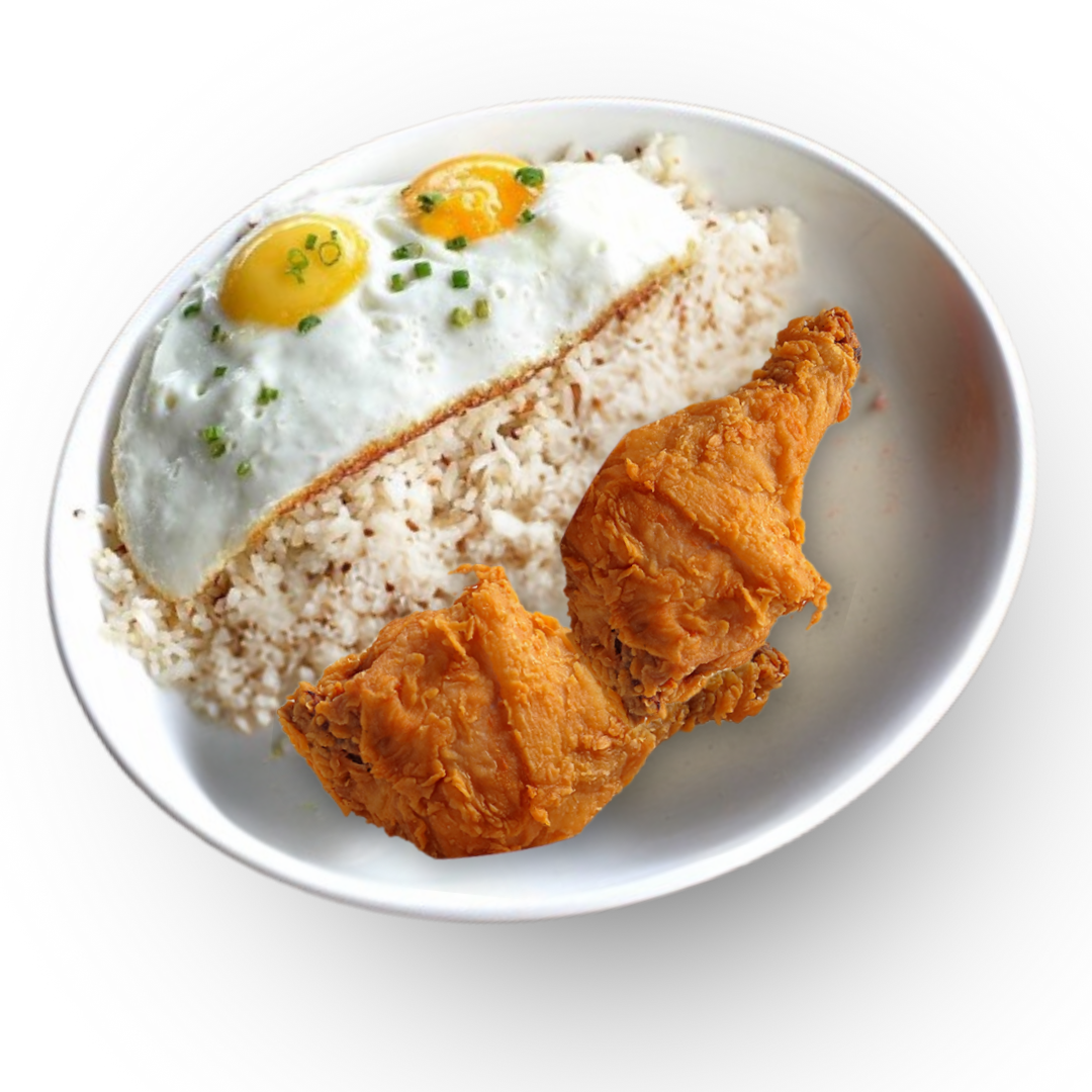 11-herbed southern style fried chicken, rice & eggs.